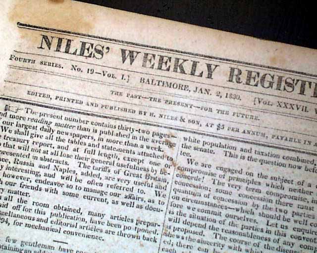 NILES' WEEKLY REGISTER, Baltimore, January 2, 1830