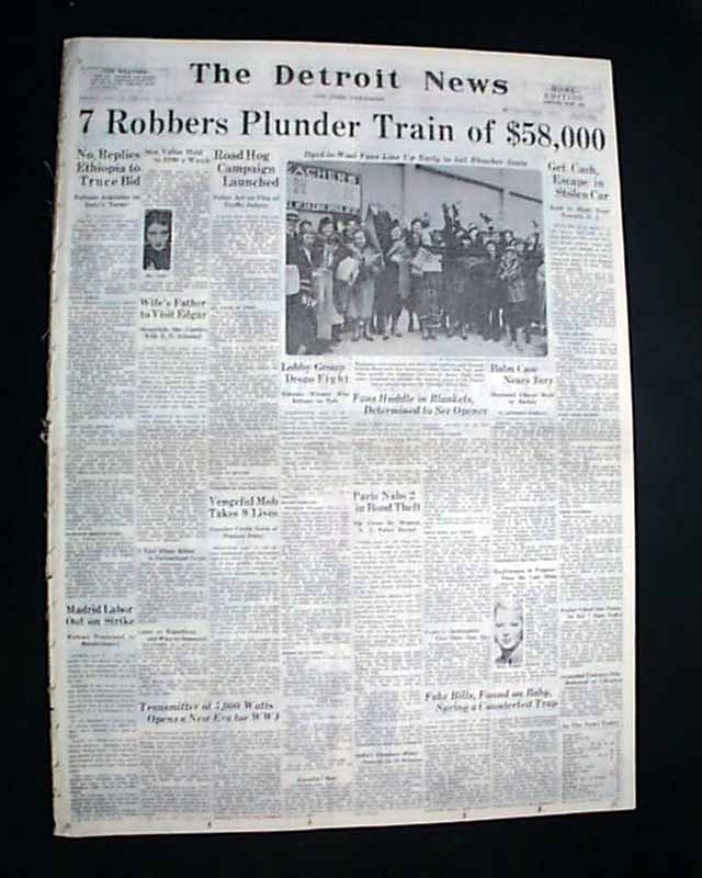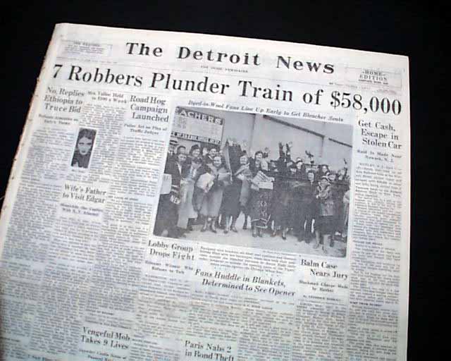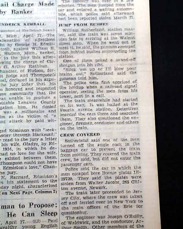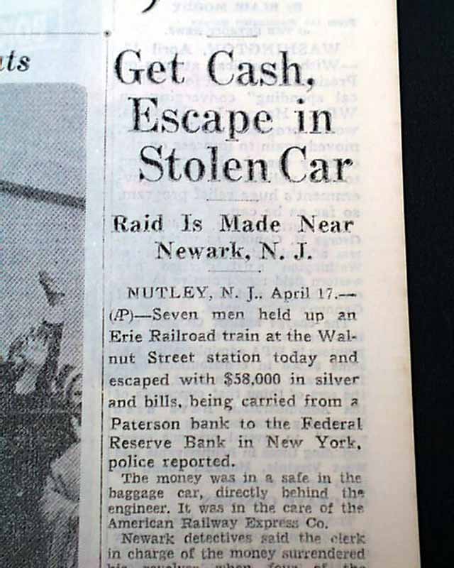 The front page has a banner headline: "7 Robbers Plunder Train of $58,000" with subheads. (see images)