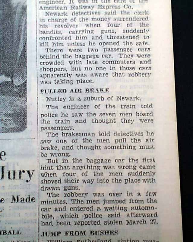 background: The April 17, 1936, train robbery in Nutley, New Jersey, played out like a cinematic scene from the Wild West transposed into the modern era. As the Erie Railroad train No. 120 pulled into the Walnut Street station at roughly 10:20 AM, a gang of seven masked bandits—who had been lying in wait behind a coal shed—swiftly boarded the express car before the train could depart. Armed with sawed-off shotguns and submachine guns, the group overpowered the express messenger and baggage master, forcing them to open a safe containing payroll funds intended for local businesses. The thieves made off with approximately $58,000 in cash, transferring the loot into a high-powered getaway sedan that sped off toward the Newark area, leaving behind a stunned crew and a flurry of local and federal investigators. The precision and boldness of the daylight heist, occurring in a quiet suburban neighborhood, shocked the nation and highlighted the final, violent gasps of the Depression-era "gangster" period.
