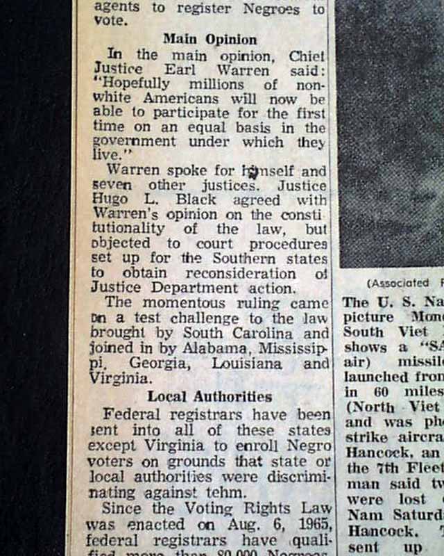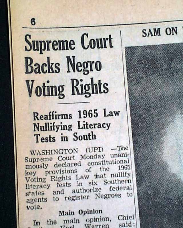 The top of page 6 has a one column heading: "Supreme Court Backs Negro Voting Rights" with subhead. (see images)