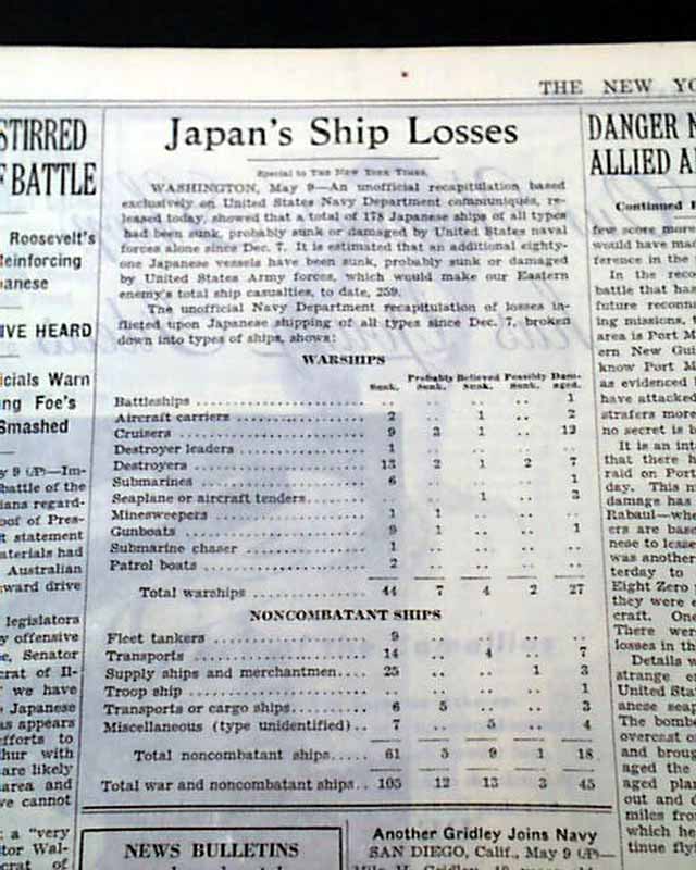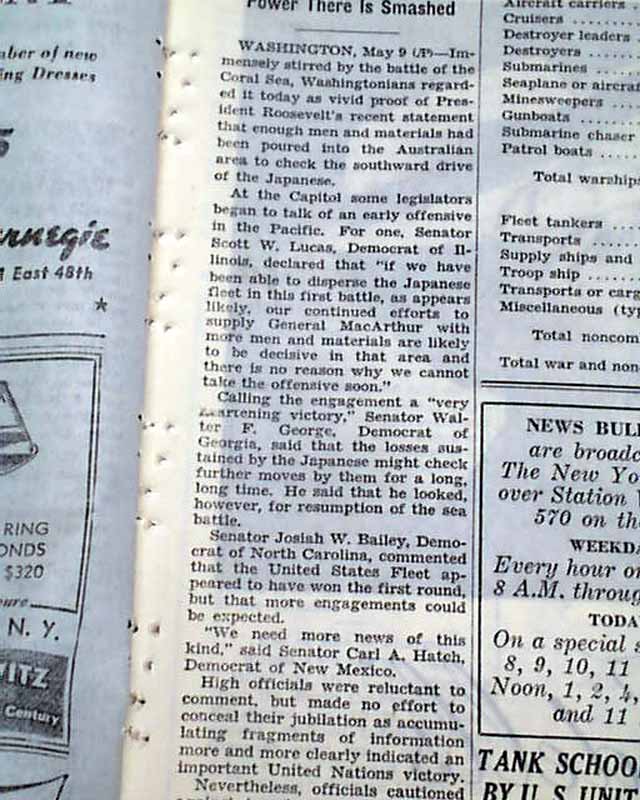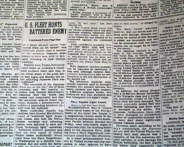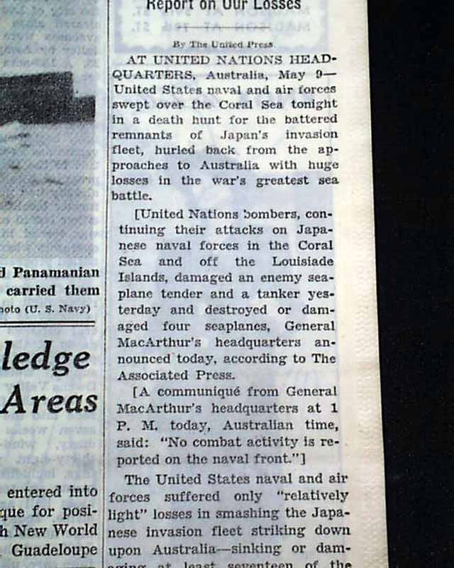 Background: On May 9, 1942, both the United States and Japan issued claims about the outcome of the Battle of the Coral Sea that reflected their differing perspectives and propaganda aims. The U.S. framed the engagement as a strategic victory despite suffering the loss of the carrier USS Lexington and damage to USS Yorktown, emphasizing that the battle had halted the Japanese seaborne advance on Port Moresby, thereby protecting Australia and weakening Japan’s carrier strength for future operations like Midway. Japanese reports, particularly via Radio Tokyo and contemporary newspapers, initially claimed a more decisive success, exaggerating U.S. losses by asserting that two carriers and a battleship had been sunk, though in reality only Lexington was lost and Yorktown damaged; from a tactical standpoint, they had inflicted significant damage, but strategically, the battle forced them to abandon or delay their invasion plans. Historians now largely agree that while Japan achieved limited tactical gains, the overall strategic outcome favored the Allies, marking Coral Sea as the first major check on Japanese expansion in the Pacific, even if on May 9 contemporaneous Japanese claims suggested otherwise.