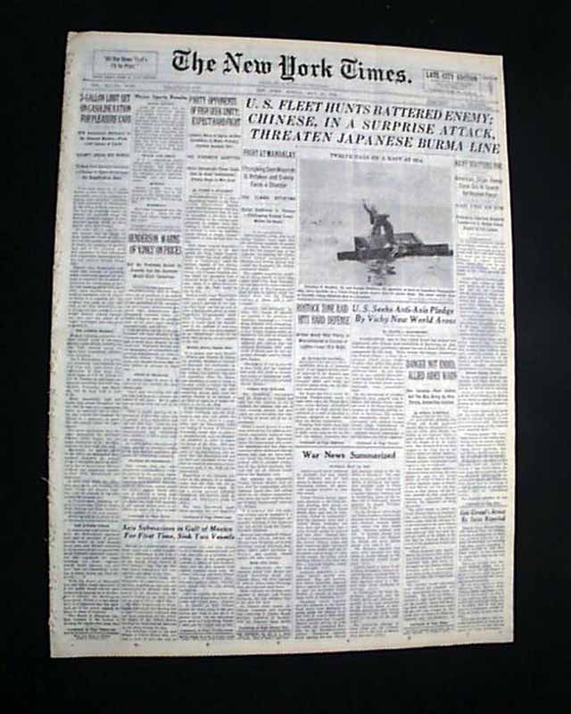 The top of the front page has a five column headline: "U. S. FLEET HUNTS BATTERED ENEMY" with subheads. (see images) More on page 3.
