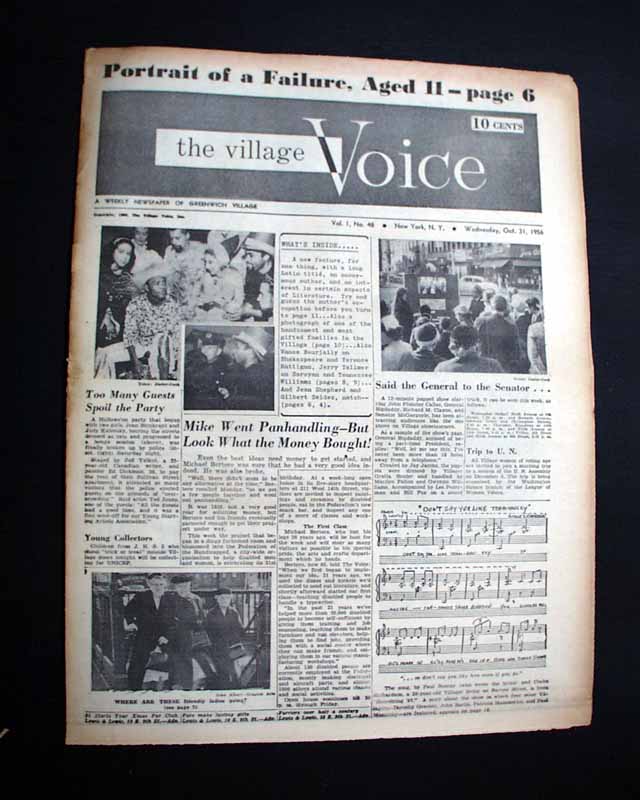 THE VILLAGE VOICE (weekly), Greenwich Village, New York, Oct. 31, 1956