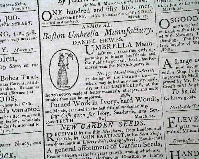 The back page has an advertisement for the: "Boston Umbrella Manufactury" by Daniel Hewes. (see image)