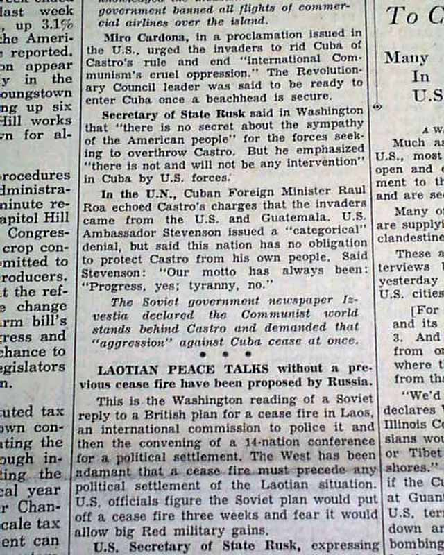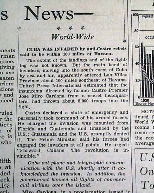 The front page has a has a small one column heading: "Cuba Was Invaded..." and more. (see images)