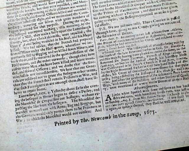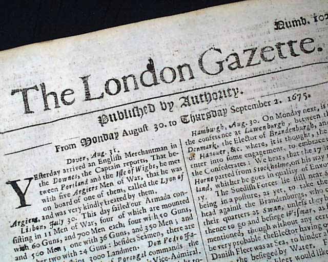Click image to enlarge Genuine London Gazette newspaper from 1675...