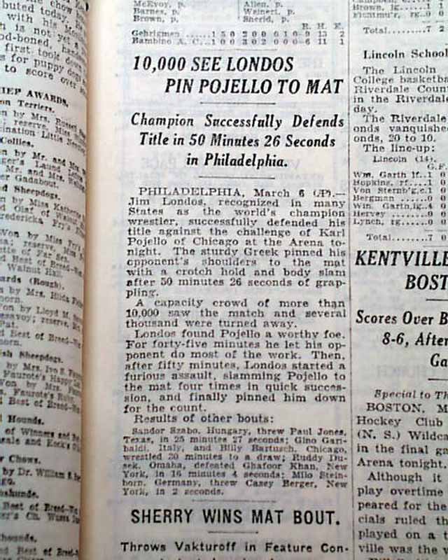 Page 25 has a somewhat discrete report with one column heading: "10,000 See Londos Pin Pojello To Mat" (see image)