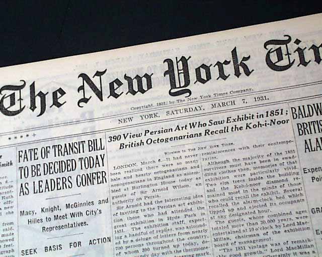 Item # 726400THE NEW YORK TIMES, March 7, 1931