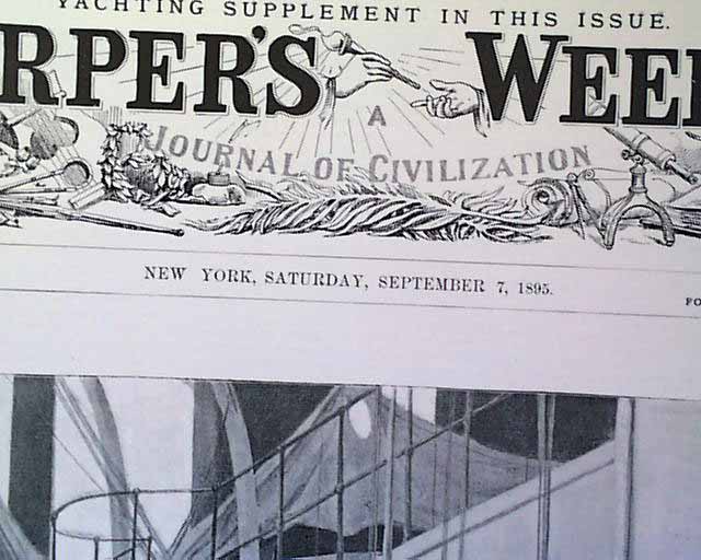 HARPER'S WEEKLY, New York, September 7, 1895 Full front pg. illus. of "Soft Bread and Shore Grub." Inside is a full pg. illus. of "The North Atlantic Squadron." 1/4 pg. illus. of "The New Ninth Precinct Police Station, New York." Full pg. illus. of "Overlooking the Course of the International Yacht Races - From the Highland Light House." Full pg. illus. of "Valkyrie III."