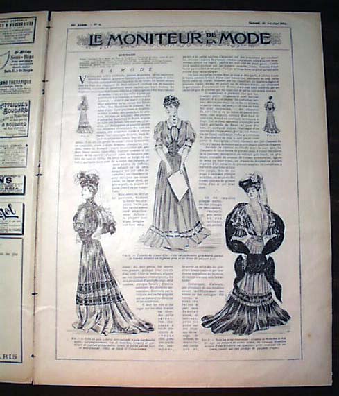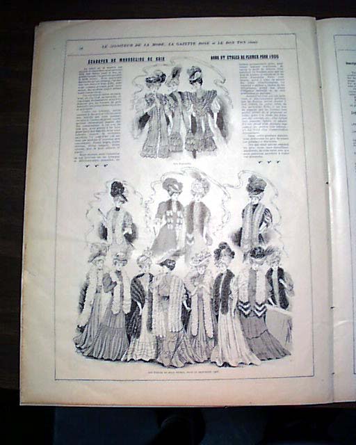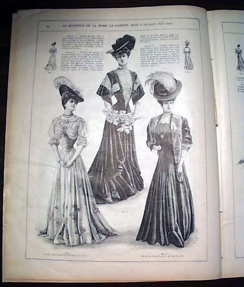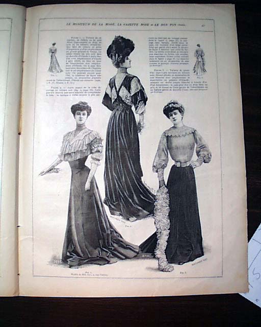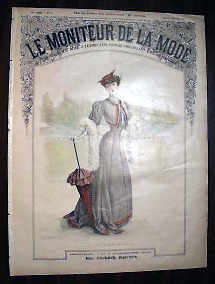 LE MONITEUR DE LA MODE, Paris, France, Feb. 10, 1906 See the photo below for the nice color cover of a woman in the fashion dress of the day, which makes this a very displayable cover. You get the complete issue with 16 pages with a number of pages of women's fashions (see photos). A bit of light toning otherwise in rather nice condition.