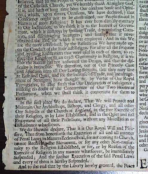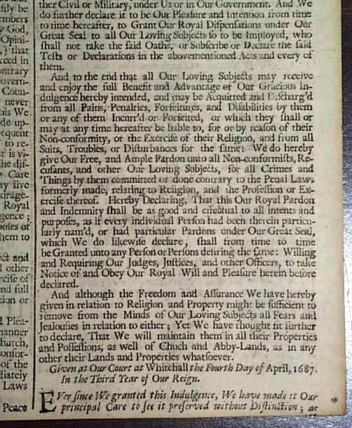 1688 Declaration Of Indulgence...