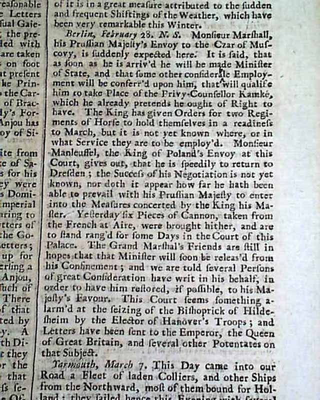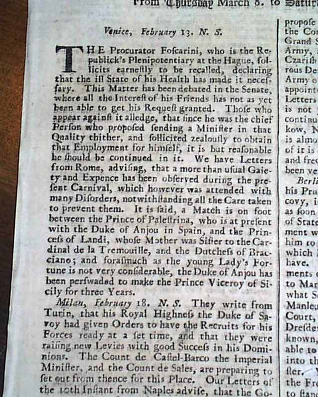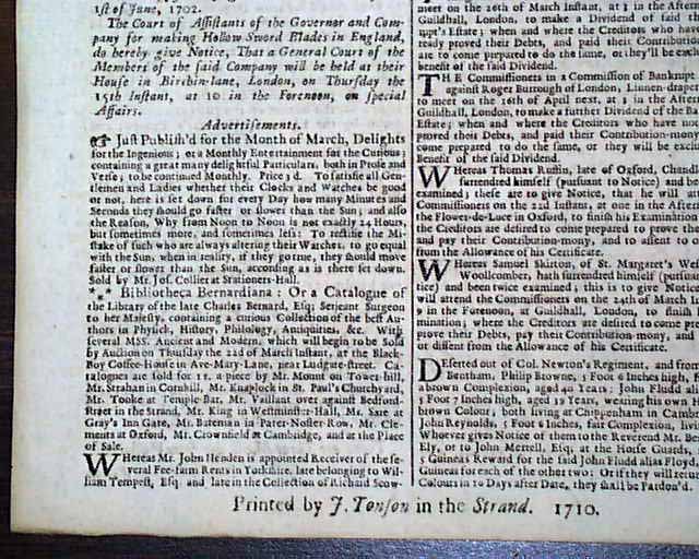1710 Before REVOLUTIONARY WAR Newspaper 296 Years Old !...
