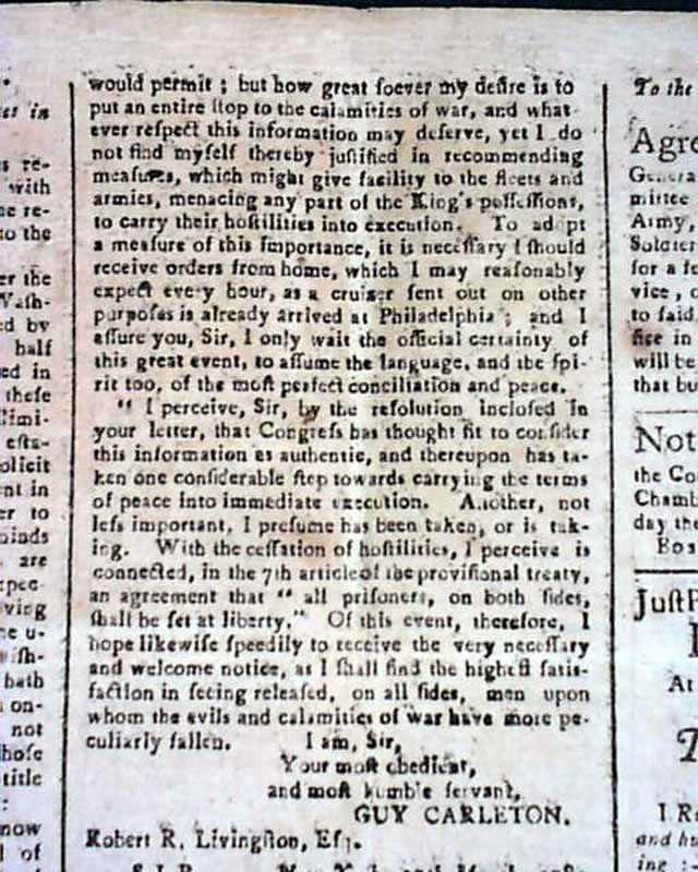 A lengthy document by Gen. Horatio Gates immediately follows Washington's letter, and the back page has a letter signed in type by Guy Carleton.
