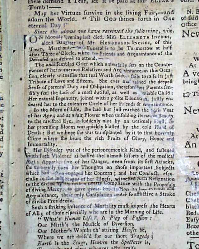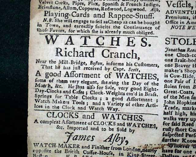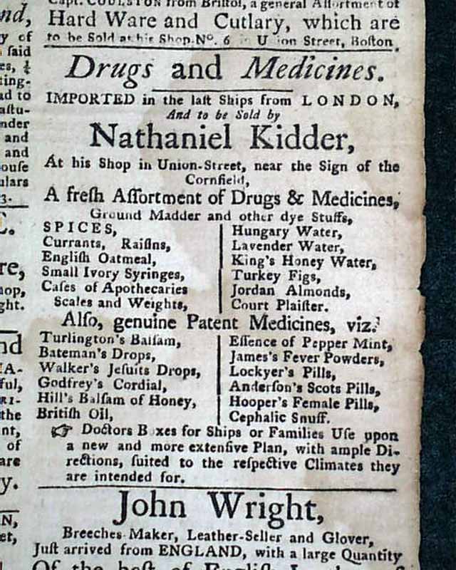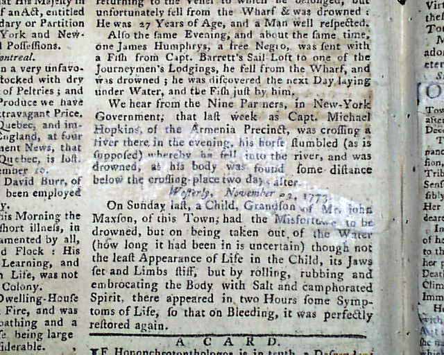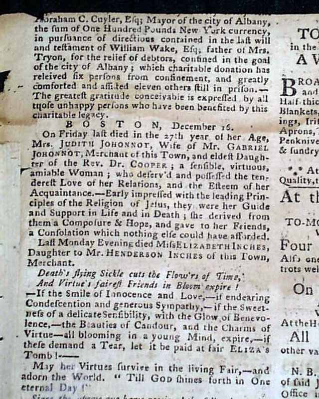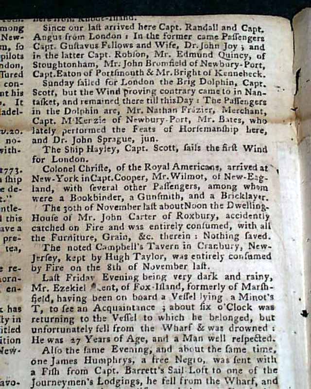 MASSACHUSETTS GAZETTE & BOSTON WEEKLY NEWS-LETTER, December 16, 1773 A perfect issue for display, being a Boston newspaper--with Boston mentioned in the title--with the date of the actual Boston Tea Party.