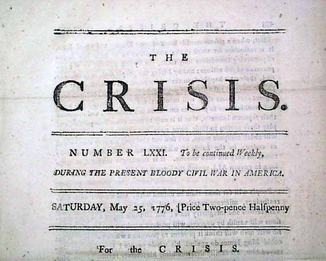 (This is not the "Crisis" pamphlet published by Thomas Paine)