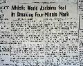 This 12 page newspaper has a two line, two column headline on page 6: "Athletic World Acclaims Feat In Breaking Lour-Minute Mark". Other news of the day throughout. Lite browning and minor wear at the margins, otherwise in good condition.