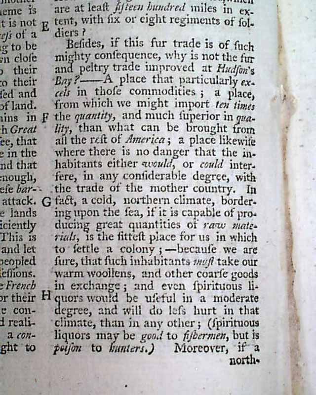 1754 Pre REVOLUTIONARY WAR Magazine Hudson's Bay Company....