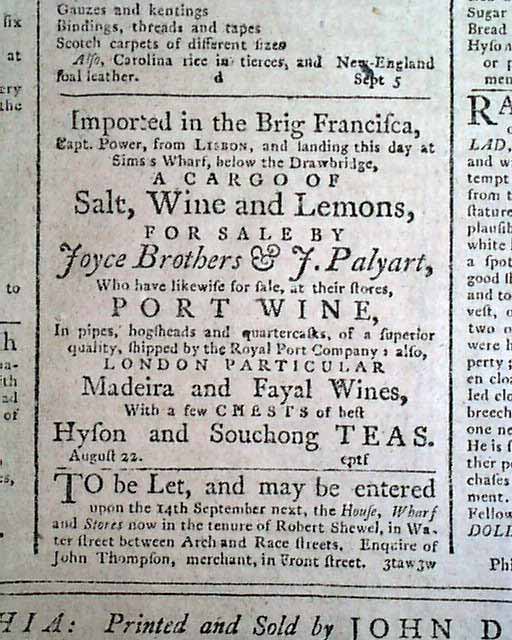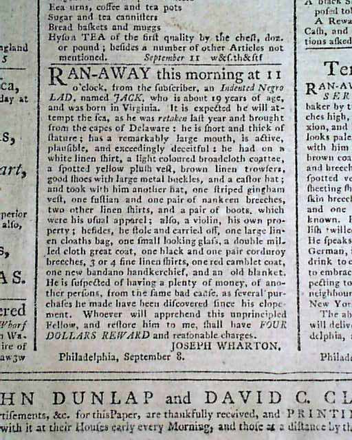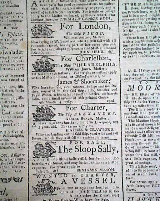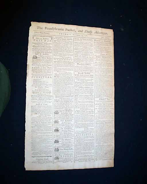 PENNSYLVANIA PACKET, AND DAILY ADVERTISER, Phila., Pennsylvania, Sept. 14, 1787.