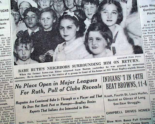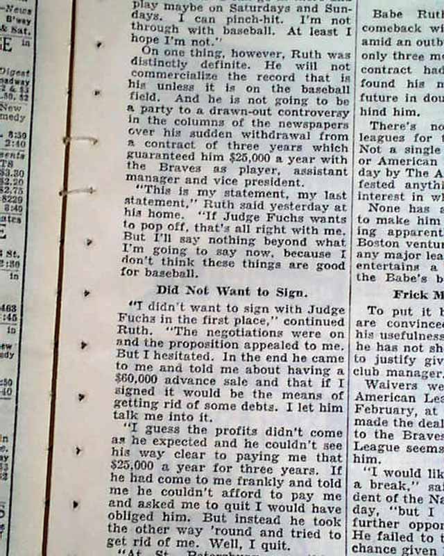 with subheads that include: "Ruth Is Undecided On Future Plans" and more. Related photo on page 27 as well. Nice to have in the New York Times.