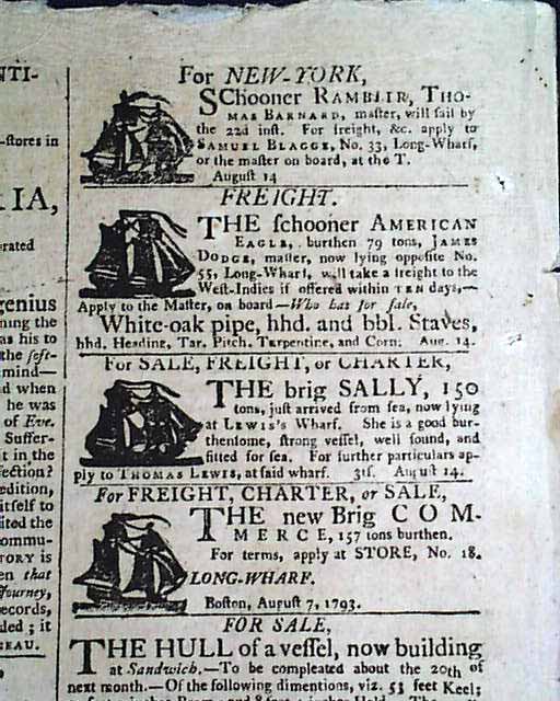 COLUMBIAN CENTINEL, Boston, August 17, 1793