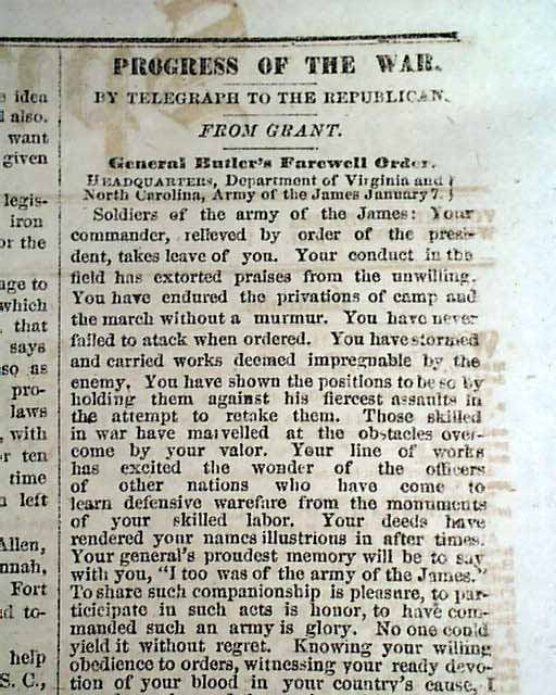 * Gen. Benjamin Butler farewell address