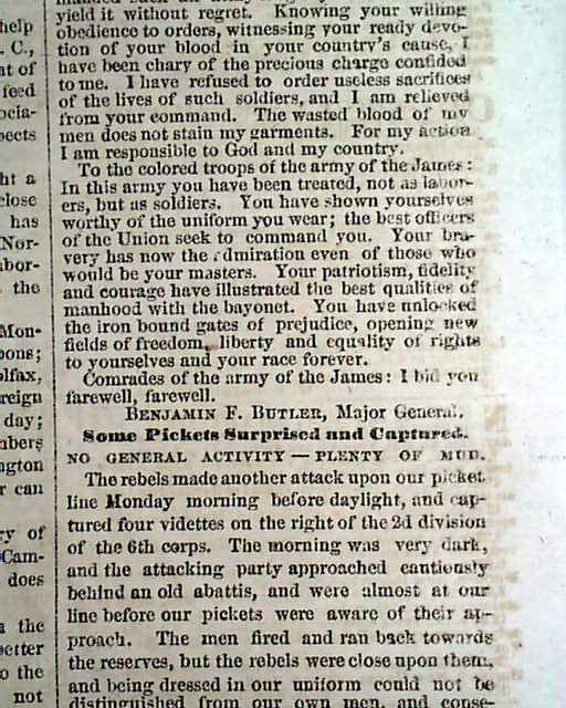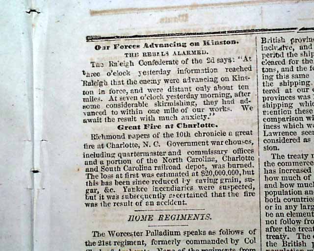 This 4 page newspaper is in nice condition due to the use of cotton and rag paper during this very historic time in U.S. history. This issue is loaded with advertisements and Civil War reports throughout from the day it was first reported which includes reports on: