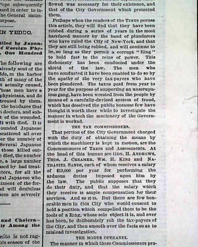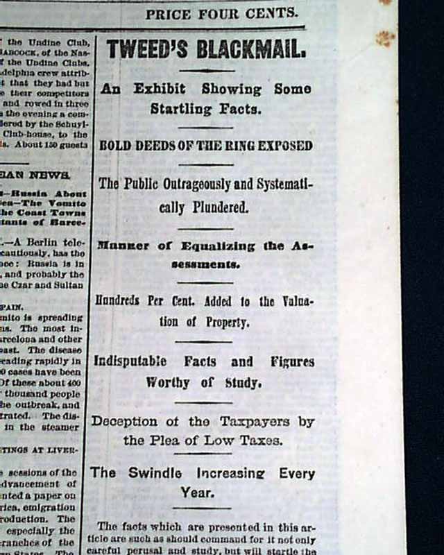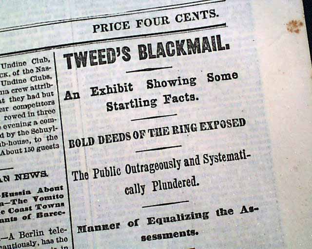 NEW-YORK TIMES, Sept. 24, 1870 Front page has: "Tweeds Blackmail", "An Exhibit Showing Some Startling Facts", "Bold Deeds Of The Ring Exposed", "The Public Outrageously and Systematically Plundered", "Manner of Equalizing the Assessments", "Hundreds Per Cent. Added to the Valuation of Property", & more.
