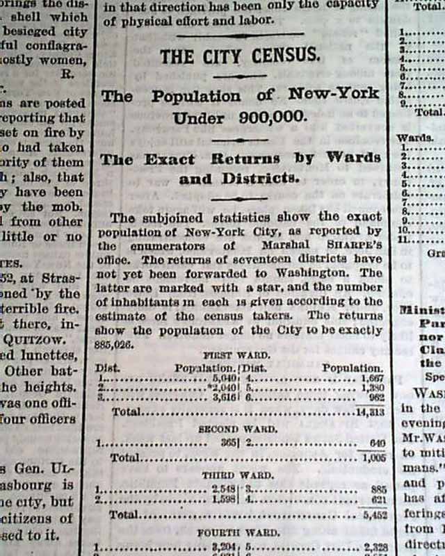 Other news of the day includes: "The City Census", "The War", "Long Island Fairs", "Baseball", and more.