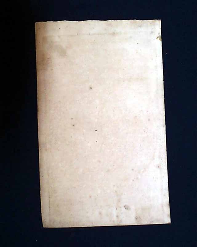 Measures about 5 by 8 from edge to edge. minor loss at the top margin line, minor browning, otherwise in nice condition.