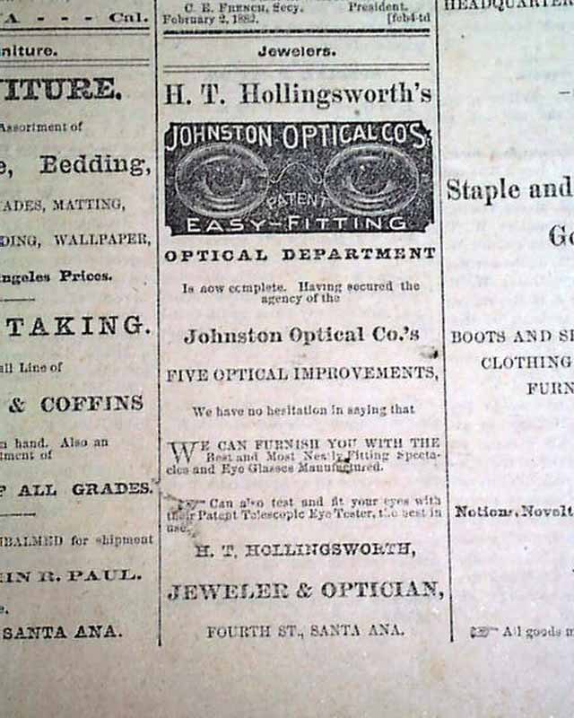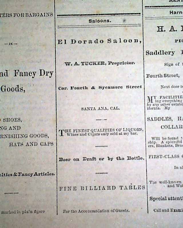 1882 Old West Newspaper From Santa Ana CA......