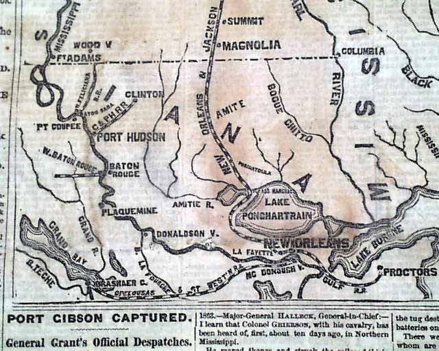 1863 Civil War Map - Port Gibson MS...