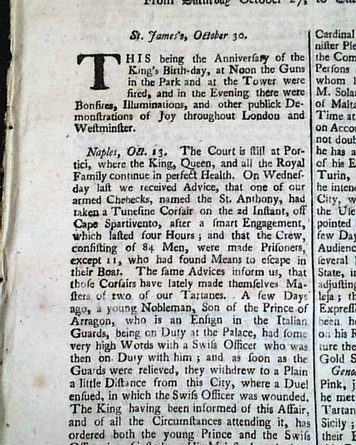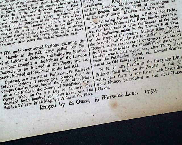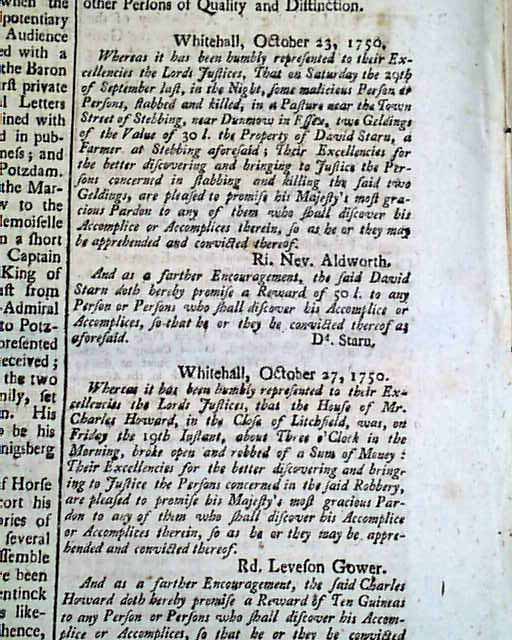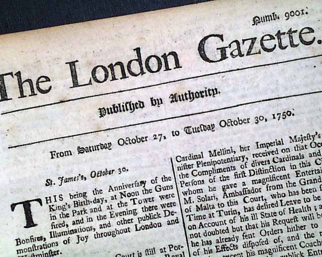 Here is the complete, genuine issue of THE LONDON GAZETTE dated October 30, 1750.