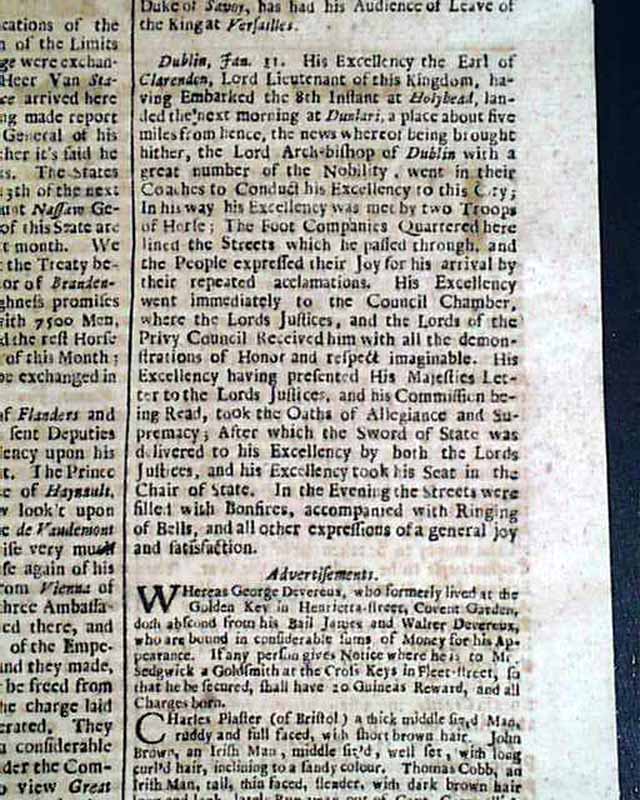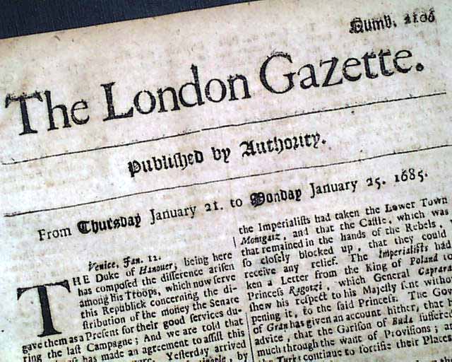 Here is the complete, genuine issue of THE LONDON GAZETTE dated January 25, 1685.