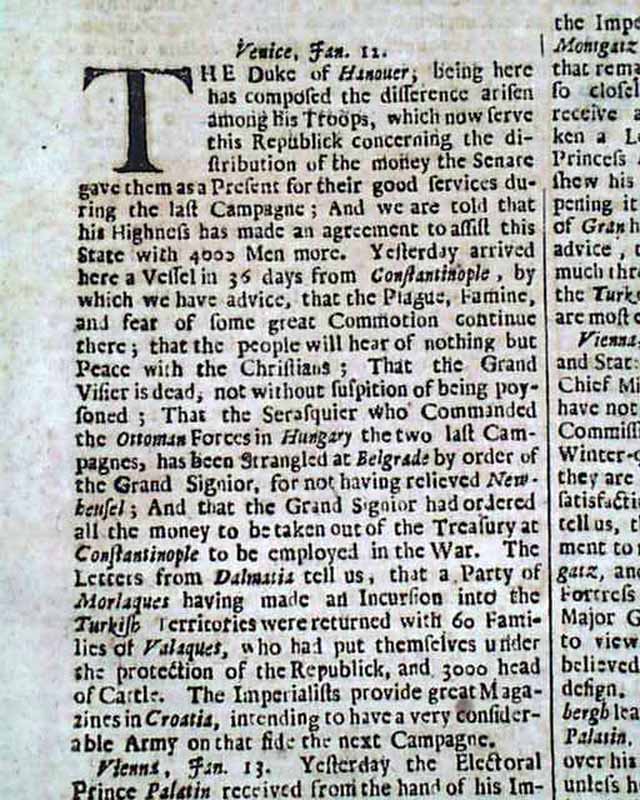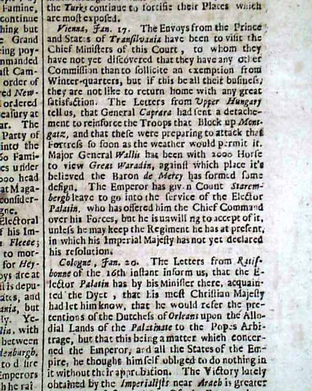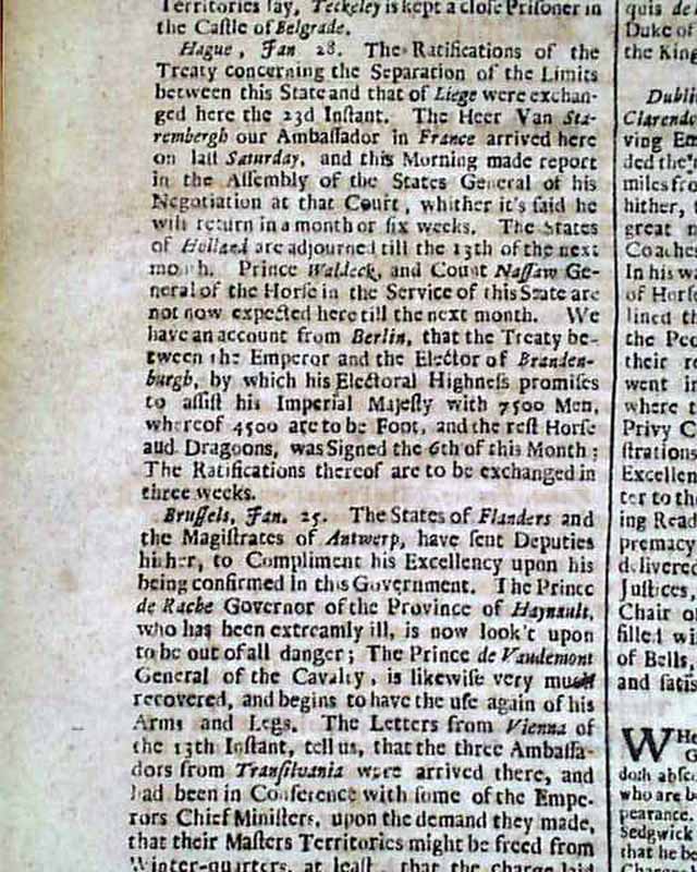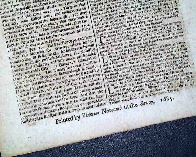 This SINGLESHEET issue is 323 years old. Various news from London and other parts of Europe also with some interesting advertisements as well