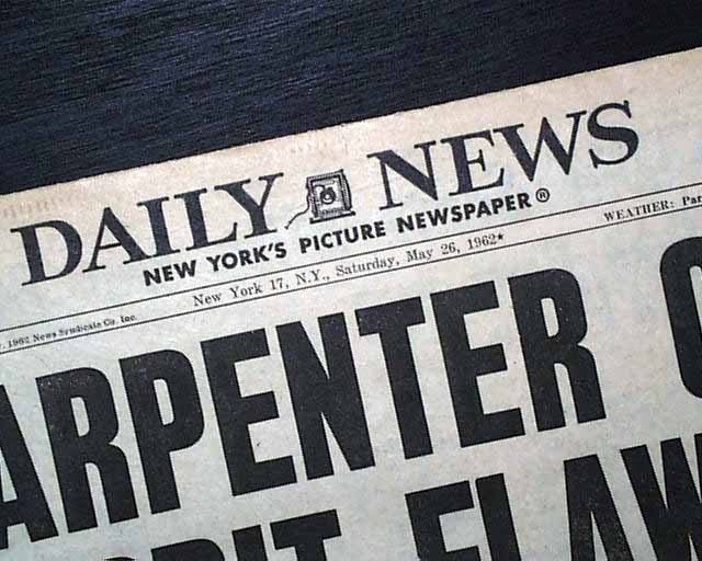 The front page of this issue features the following headline: "CARPENTER OK, ORBIT FLAWS STUMP EXPERTS", which relates the events of the Carpenter's re-entry into our atmosphere.