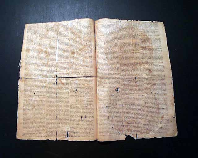 Complete in four pages with a nice engraving of a postboy in the masthead. This issue is worn with some tears at edges and folds, some causing some loss of text. A few small archival mends to pages 2 & 3. Measures 8 1/4 by 13 inches.