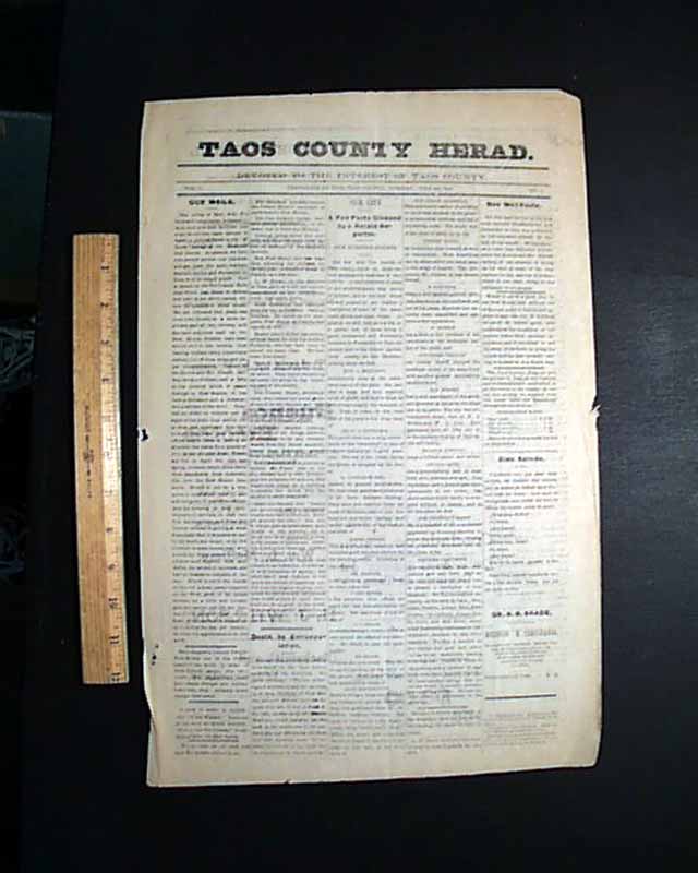 In any case this is certainly the first successful--and likely first English language--newspaper published in Taos as it continued for six years, changing its name to "Taos Valley Herald", folding in 1890.