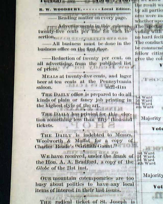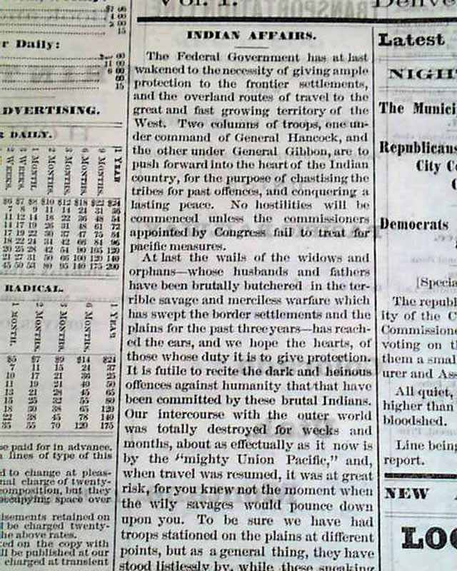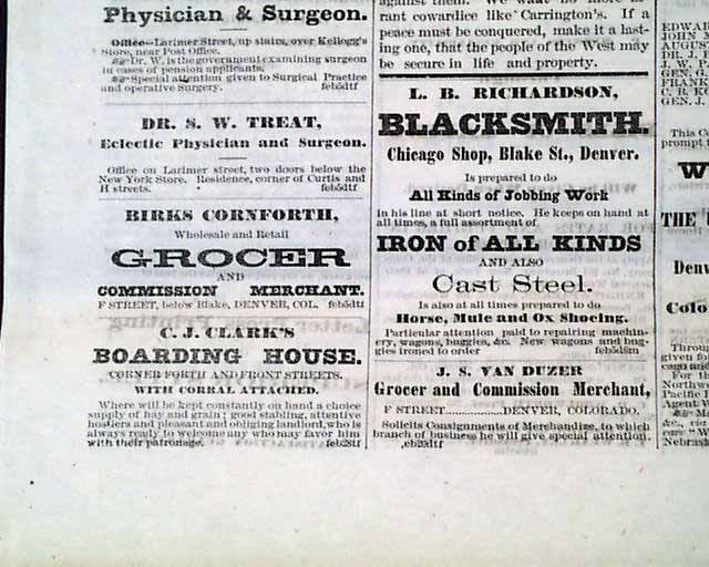 THE DENVER DAILY, Denver, CO, April 2, 1867.