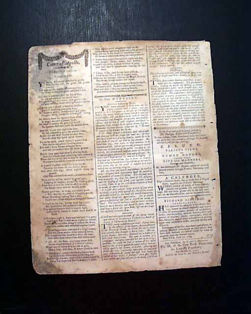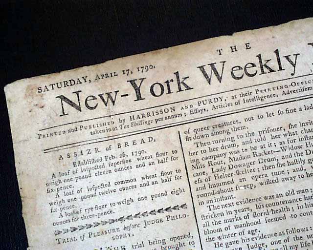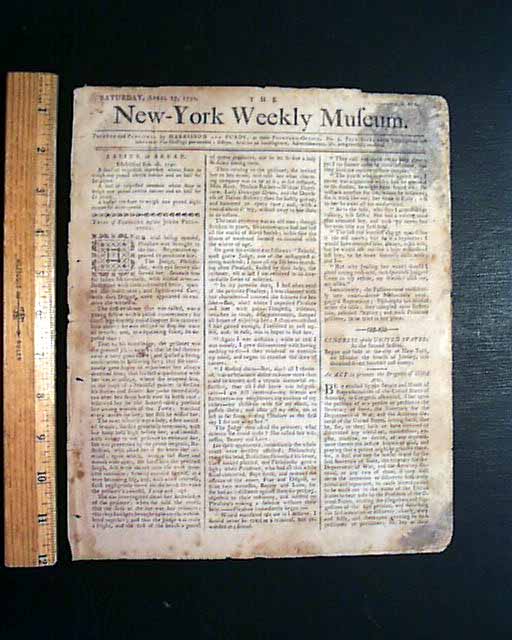 NEW YORK WEEKLY MUSEUM, New York, NY, April 17, 1790
