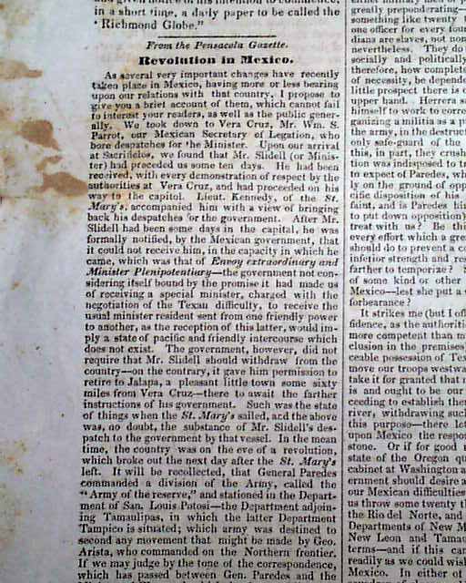 About half of the ftpg. is taken up with political reports from Washington. Also on the ftpg. is: "Origin of Native Americanism". Among the items on the inside are: "Revolution in Mexico" taking over a full column; "An Act Concerning Roads & Highways" in Florida; "The Cuba Resolutions Again" "South Florida Sugar Cane" and more. Many ads as well, with the entire bkpg. taken up with ads.