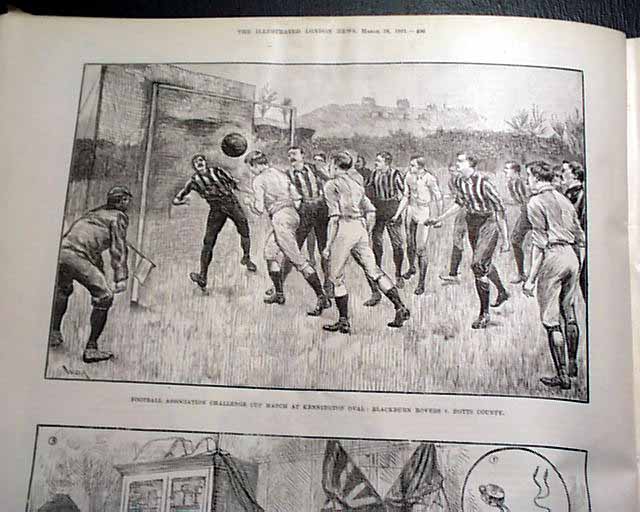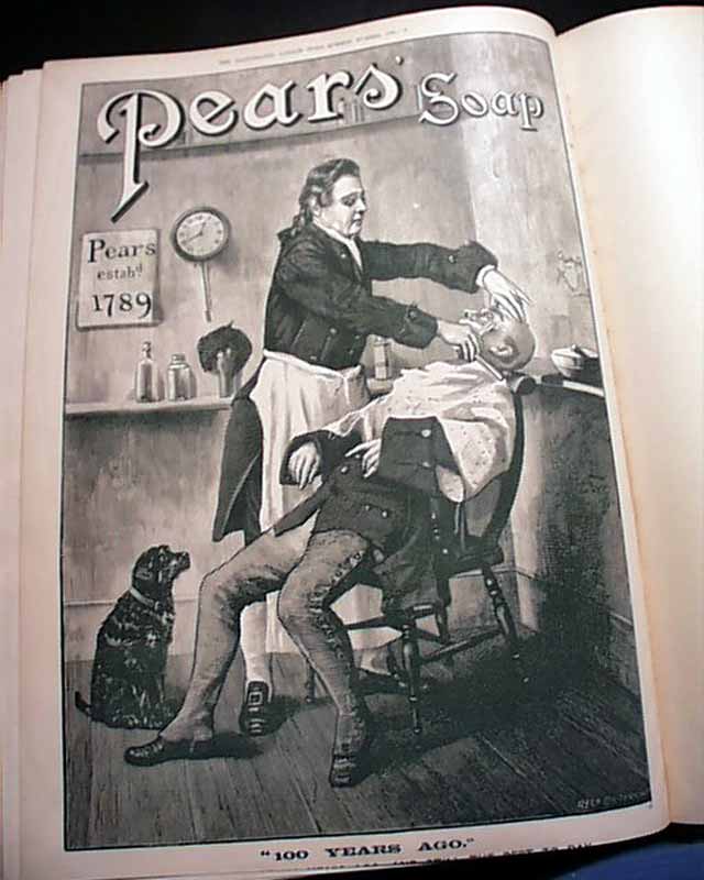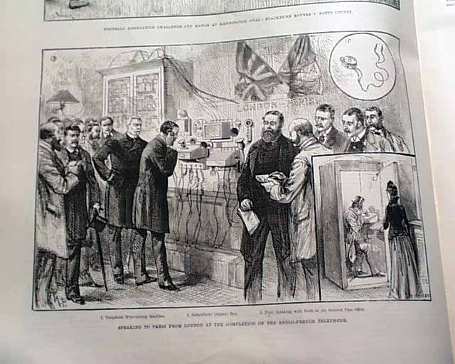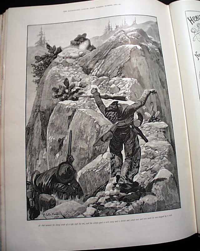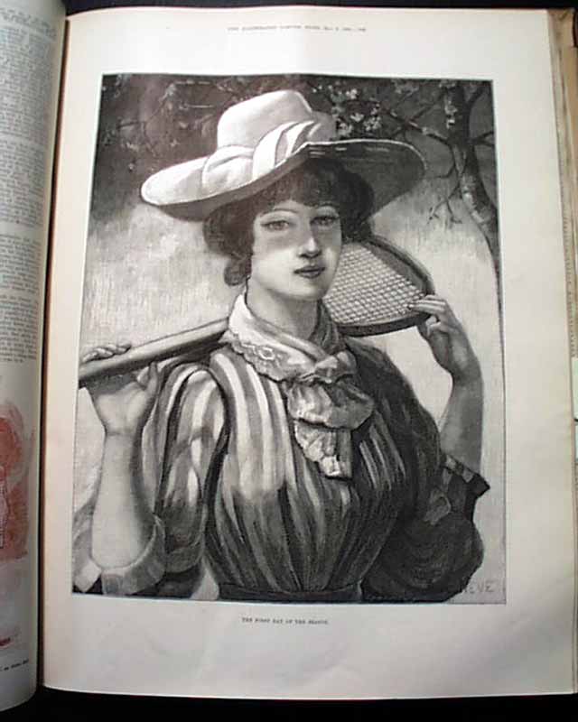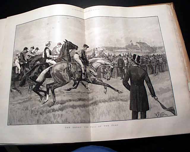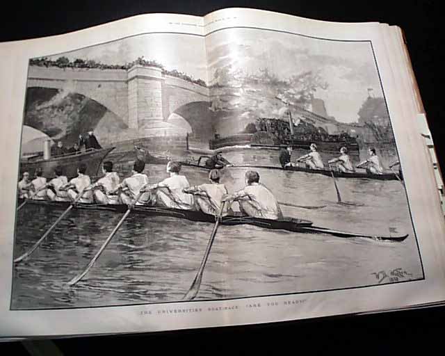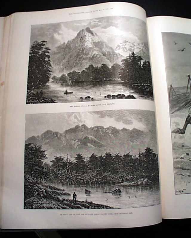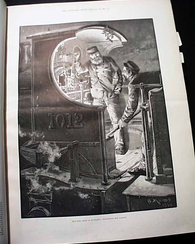 Some of the prints include: "Skating Match at Littleport" showing ice skating; "Tobogganing in Surrey" "Shopping In New York on New Year's Eve"; a terrific doublepage centerfold: "The Ghost Dance of the Sioiux Indians In North America"; a nice cowboy scene from a Western town: "The Indian Rising in America--Latest News!"; a large number of prints of Siberia; "Views in Alaska & on the Coasts of the Behring Sea" has 8 scenes; "The Rising of the North American Indians: 'Braves' Leaving the Reservation" is an Indian scene; "Sketches in Chili,South America"; several prints of the Salvation Army; "The Great Schools of England--Winchester"; a fullpg. print of "Sir Walter Scott" "Quicksilver Mining in Mexico" "Views In Iceland" "The Late General W. T. Sherman" "Sketches at Monte Carlo" "A Lecture of Fencing at the Lyceum Theatre" "Football Match between England & Scotland..." (rugby); "the Universities' Boat Race 'Are You Ready?' "Football Association Challenge Cup Match..." (soccer); a small print of: "The Late Mr. P. T. Barnum"; four full page prints of: "Middlesborough, Kentucky" "The First Day of the Season" shows a woman with a tennis racket; scenes in New Zealand; "The Derby: The Fall of the Flag" "The Great Schools of England: Rugby" "Ascot Races..." "William Makepeace Thackeray"; a nice color cover of the: "Summer Number of the Illustrated London News, 1891 - Eagle Joe" (see), and so much more!