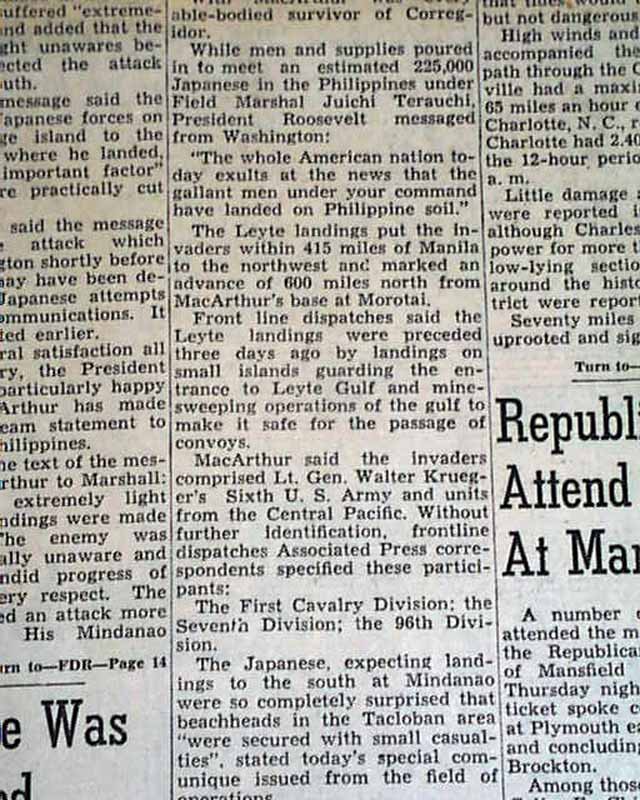 This is a early report on MacArthur's famous return to the Philippines in Leyte Gulf. A great issue for display.