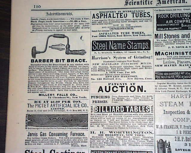 This 16 page issue contains illustrations of the latest inventions of the day including the following inventions and/or prints: The Cash recording Machine - Swivel Hanger - Aerophore - Hoisting Machine - Ice Cream Beater & More. Supporting text is also present.