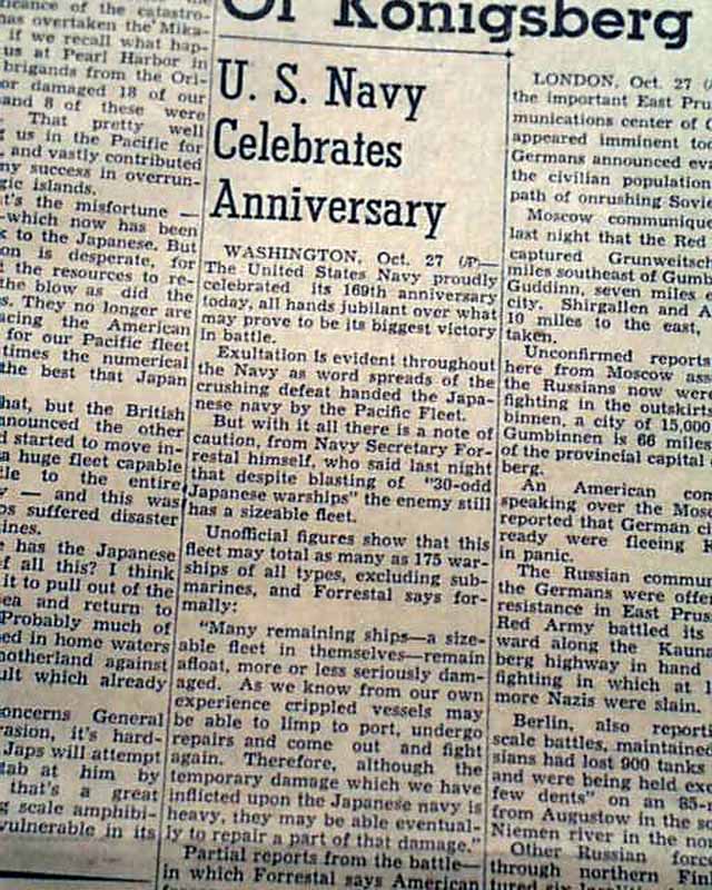 Other news of the day with much more on World War II. Light browning with minor margin wear, otherwise good.