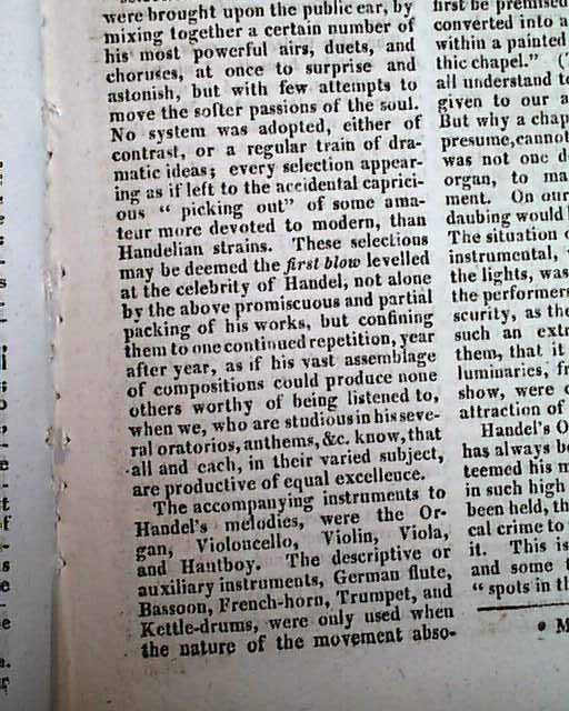 Additionally, an early page has "Thoughts on the Musick of Handel & on the Mode of Performing it at the present day, conceived on hearing the sacred Oratorio of the Messiah..." which takes over a full page (see for portions).