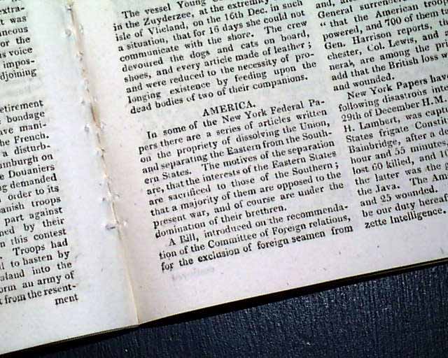 Near the back under "America" is a curious article beginning: "In some of the New York Federal papers there are a serious of articles written on the propriety of dissolving the Union & separating the Eastern from the Southern states...".