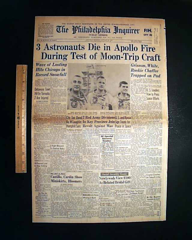 * 3 Astronauts Die in Apollo Fire During Test of Moon-Trip Craft