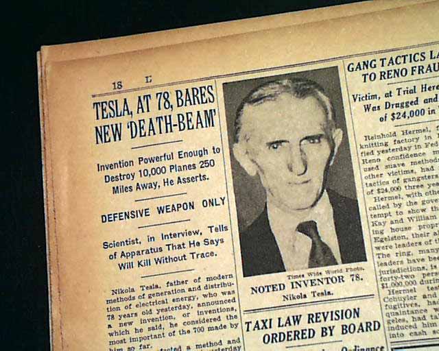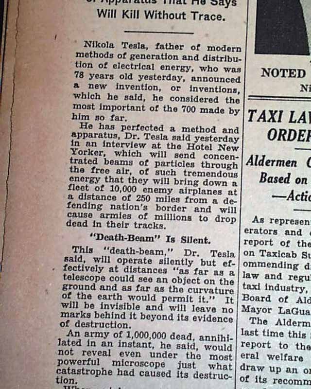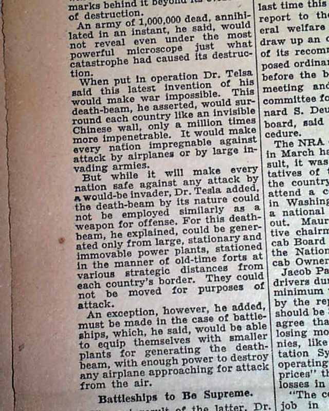 * TESLA, AT 78, BARES NEW 'DEATH-BEAM'