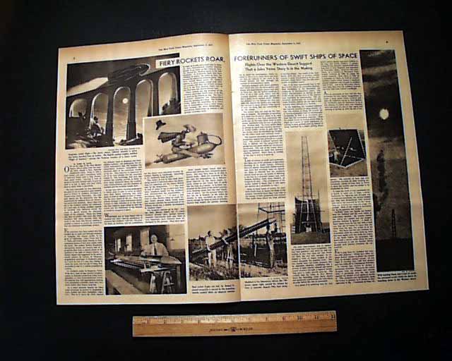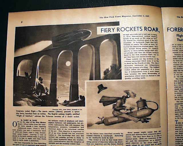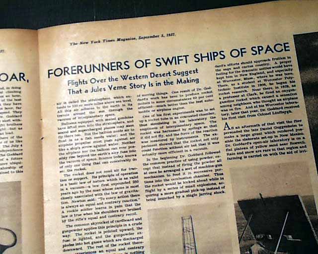 Here is the magazine section from the September 5th, 1937 issue of the New York Times. Within this 24 page magazine is a great two page editorial on Robert H. Goddard and his recent experiments with early rocketry.