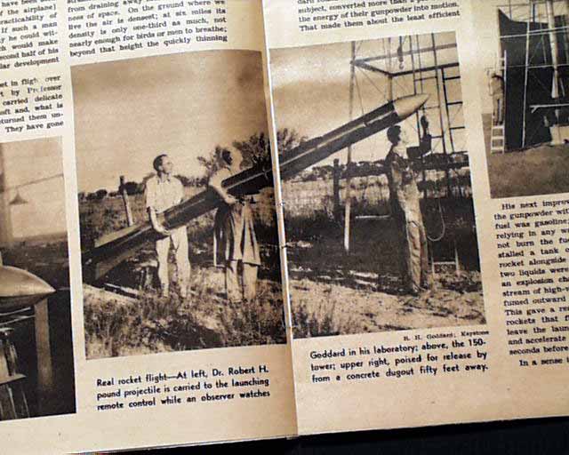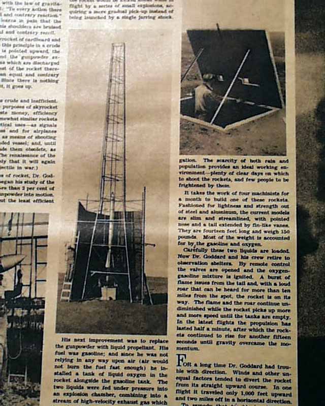 with subhead. Also five related photos and two illustrations. (see) Lengthy text here, too much to photograph. A nice period item on the 'father of rockets'.